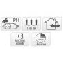 - 8 lichtfuncties: 1.Combination, 2. In waves, 3.Sequential, 4. Slo glo, 5. Chasing/flash, 6.Slow fade, 7.Twinkle/flash, 8.Steady on